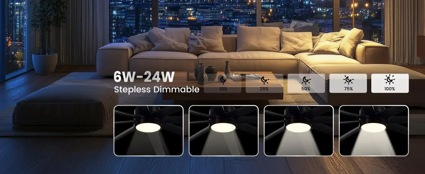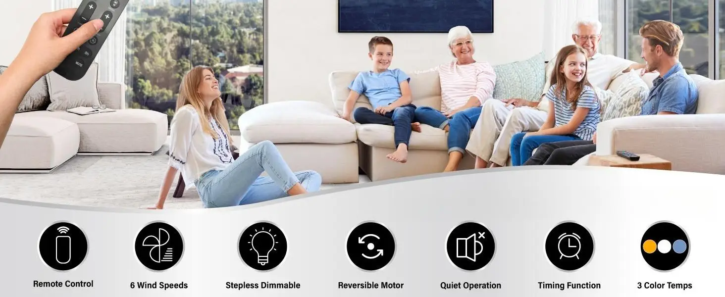 • The ceiling fan is equipped with a beautiful remote control, and both the light and fan can be controlled separately. With the remote control, you can adjust wind speeds in 6 gears, timer off, one click mute, simulate natural wind, and reverse the rotation of the fan, providing you with a comfortable user experience